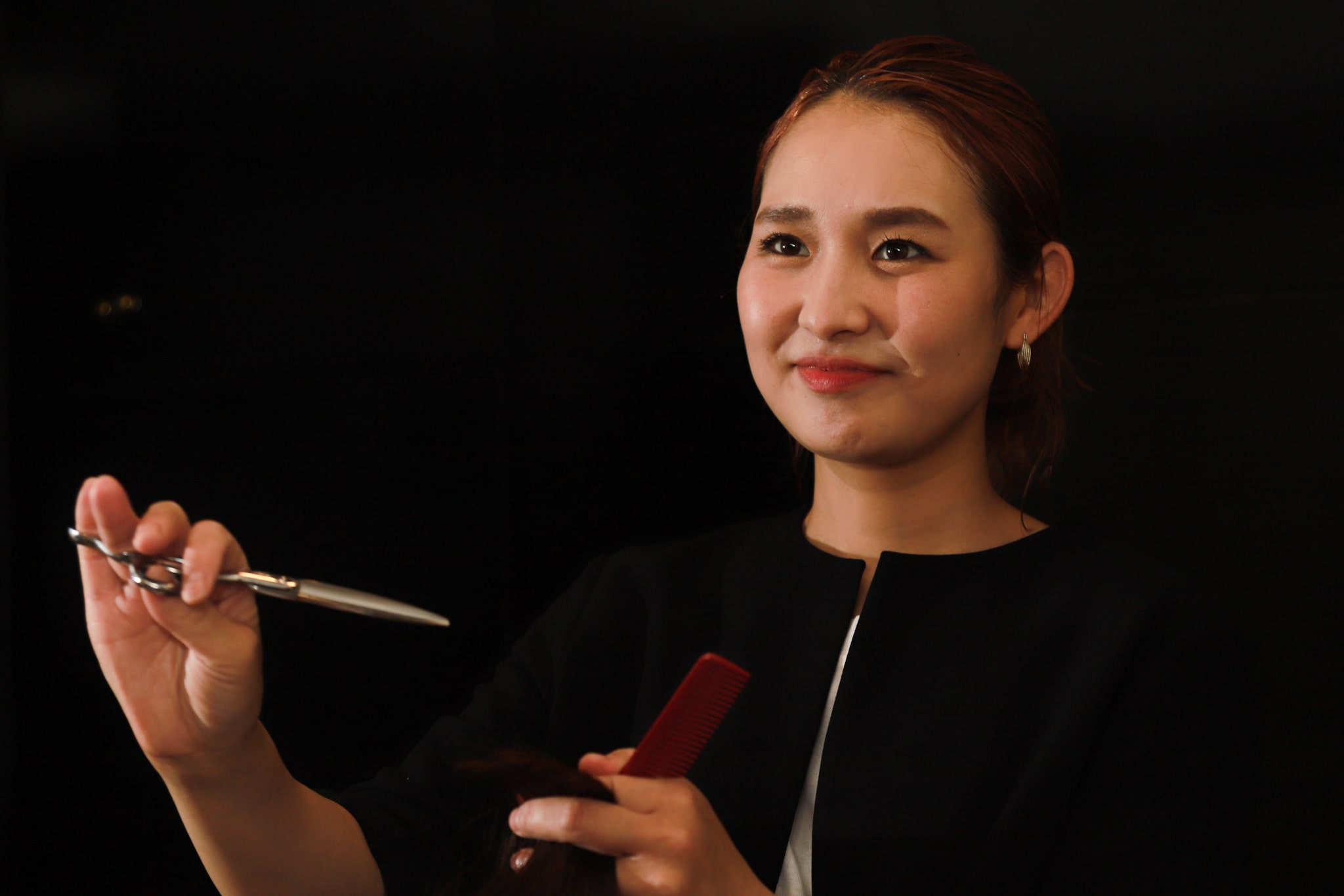 ストレートの艶髪をいかしたシャープでシンプルなスタイルになります。