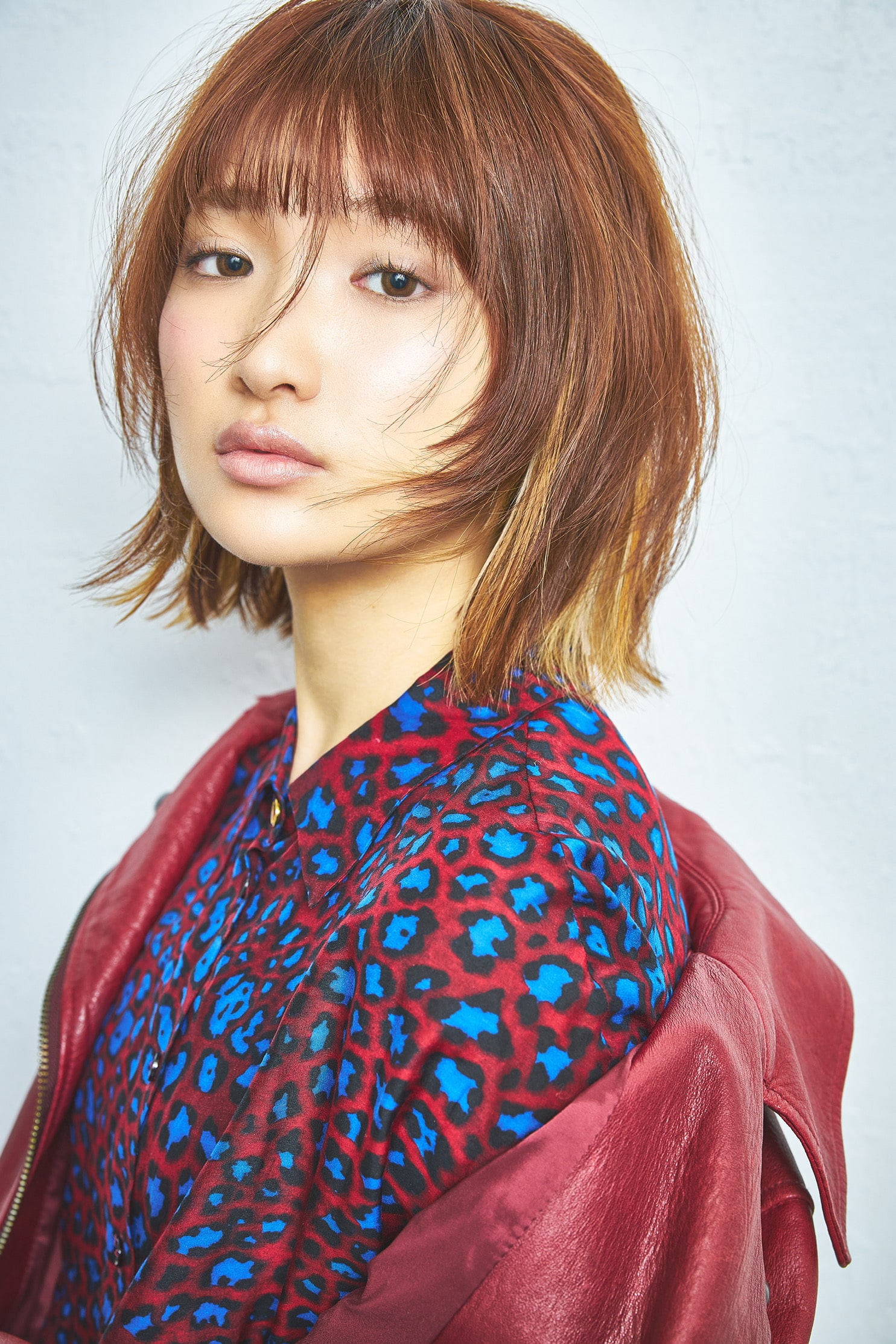 フェイスラインにしっかりレイヤーを入れる事によってモードで印象的なスタイルとなります。